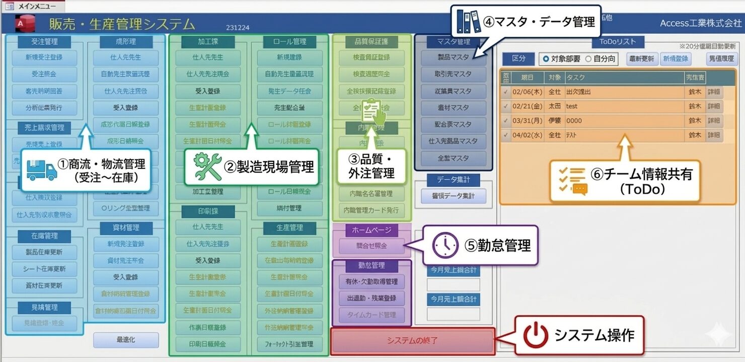 以前のシステムでは解決できなかった「製造業のリアルな悩み」を、Accessによる独自設計で解決しました。